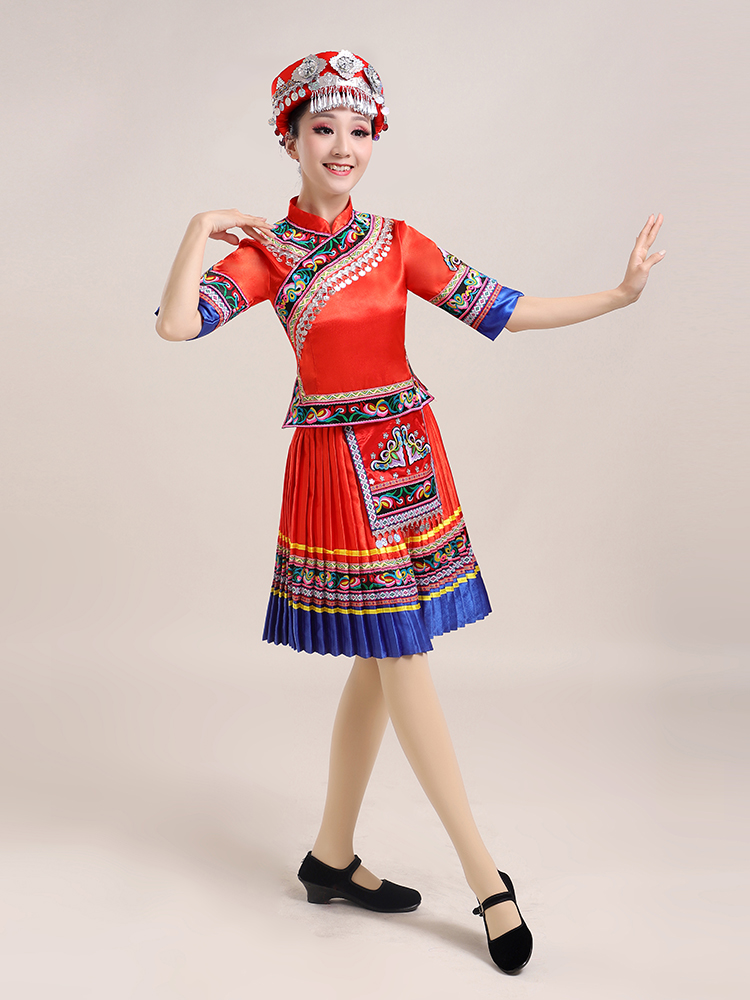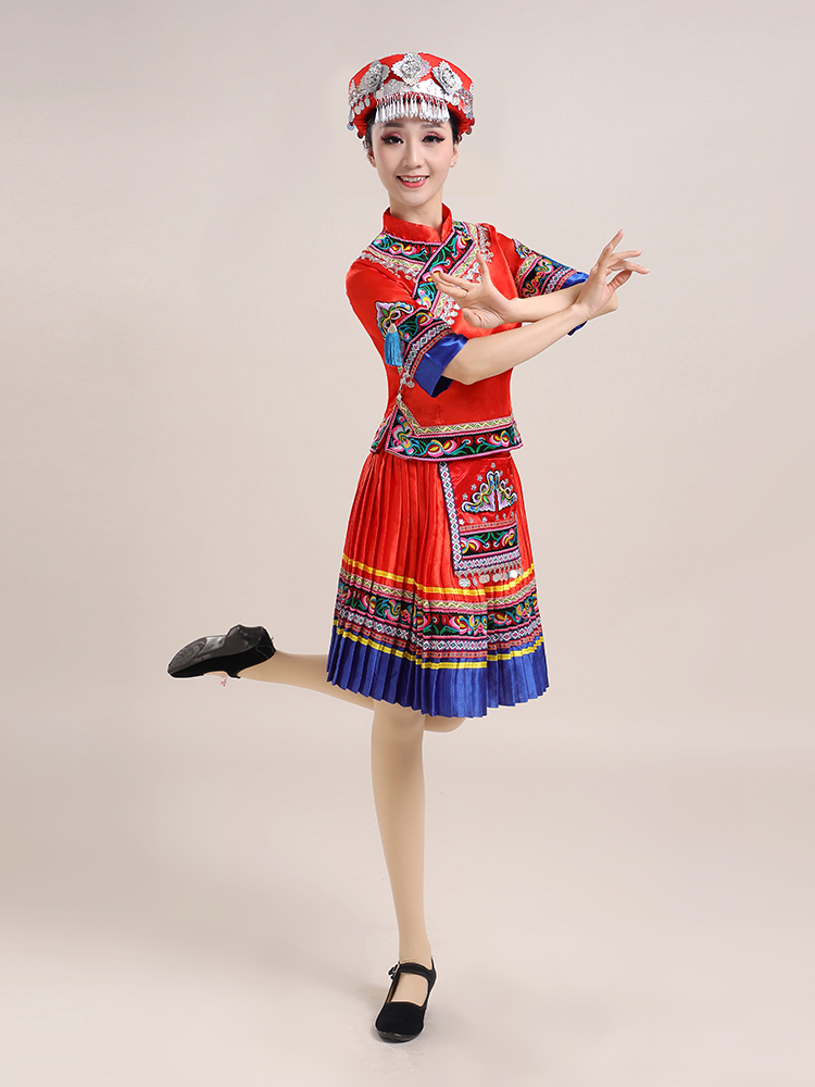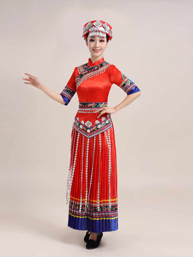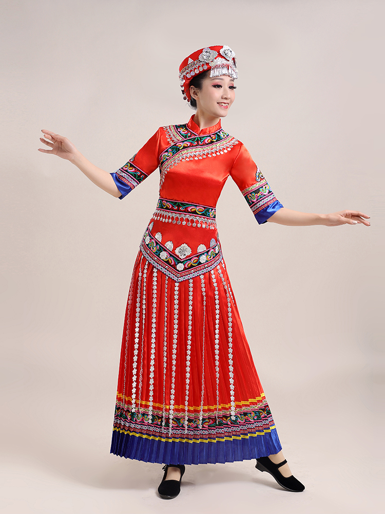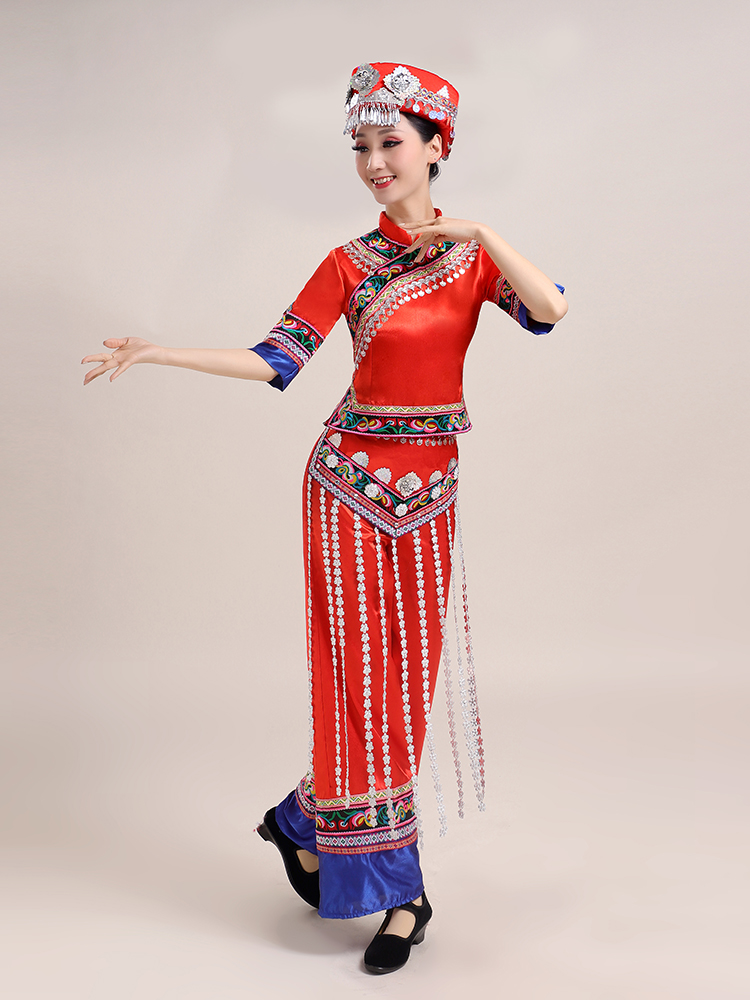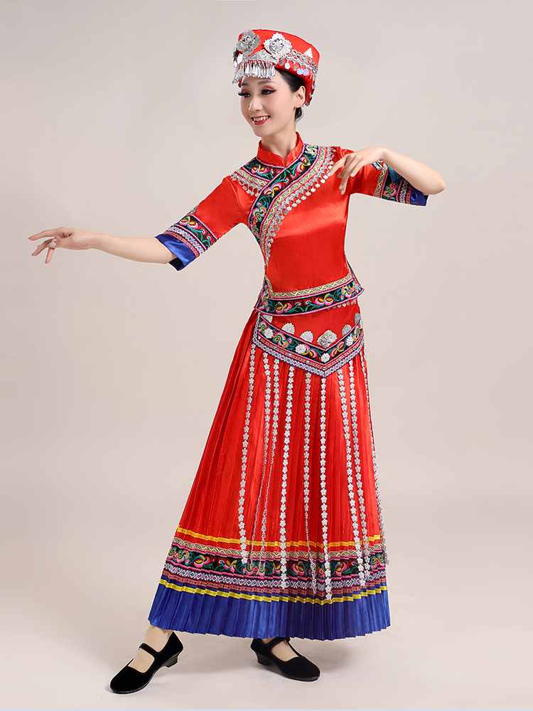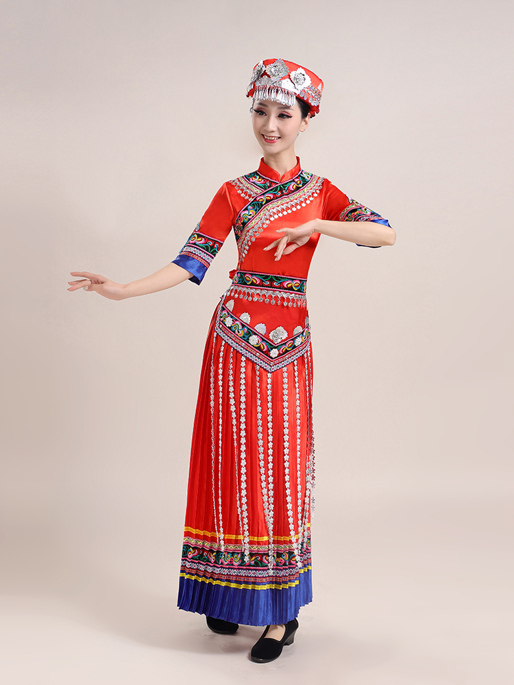 新民族風演出服怒族服装女性少数民族成人ロングスカートズボンタイプダンス衣装セット