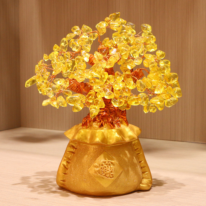 黄水晶発財樹招財置物家庭用キャビネット装飾品テレビキャビネット小元宝金振り木開業プレゼント