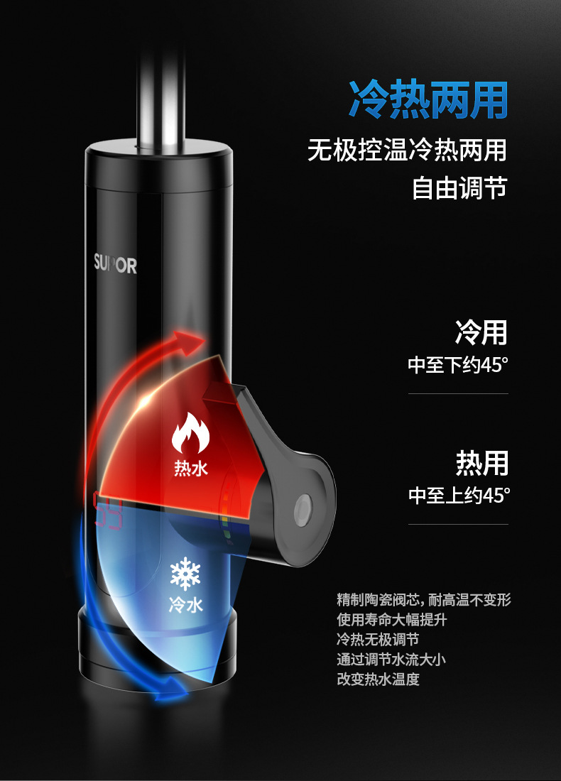 蘇泊爾電熱蛇口ヒーターは熱式速熱給湯器キッチン家庭用電気加熱冷熱両用です。