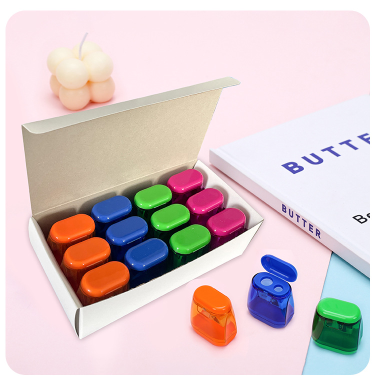 新学期用二穴蓋付き鉛筆削り 小学生専用 小型プラスチック製手動鉛筆削り 工場卸売