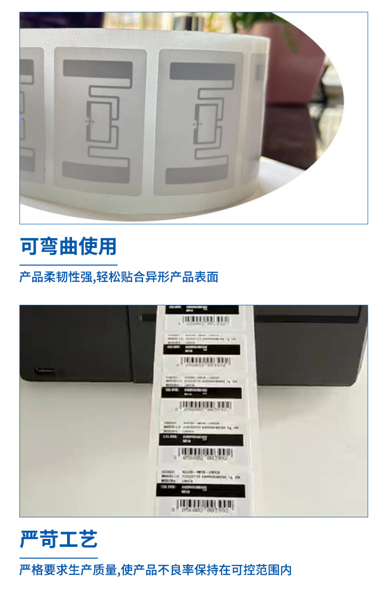 Rfidフレキシブル耐金属タグ60*12欧州標準rfid印刷可能電子タグ