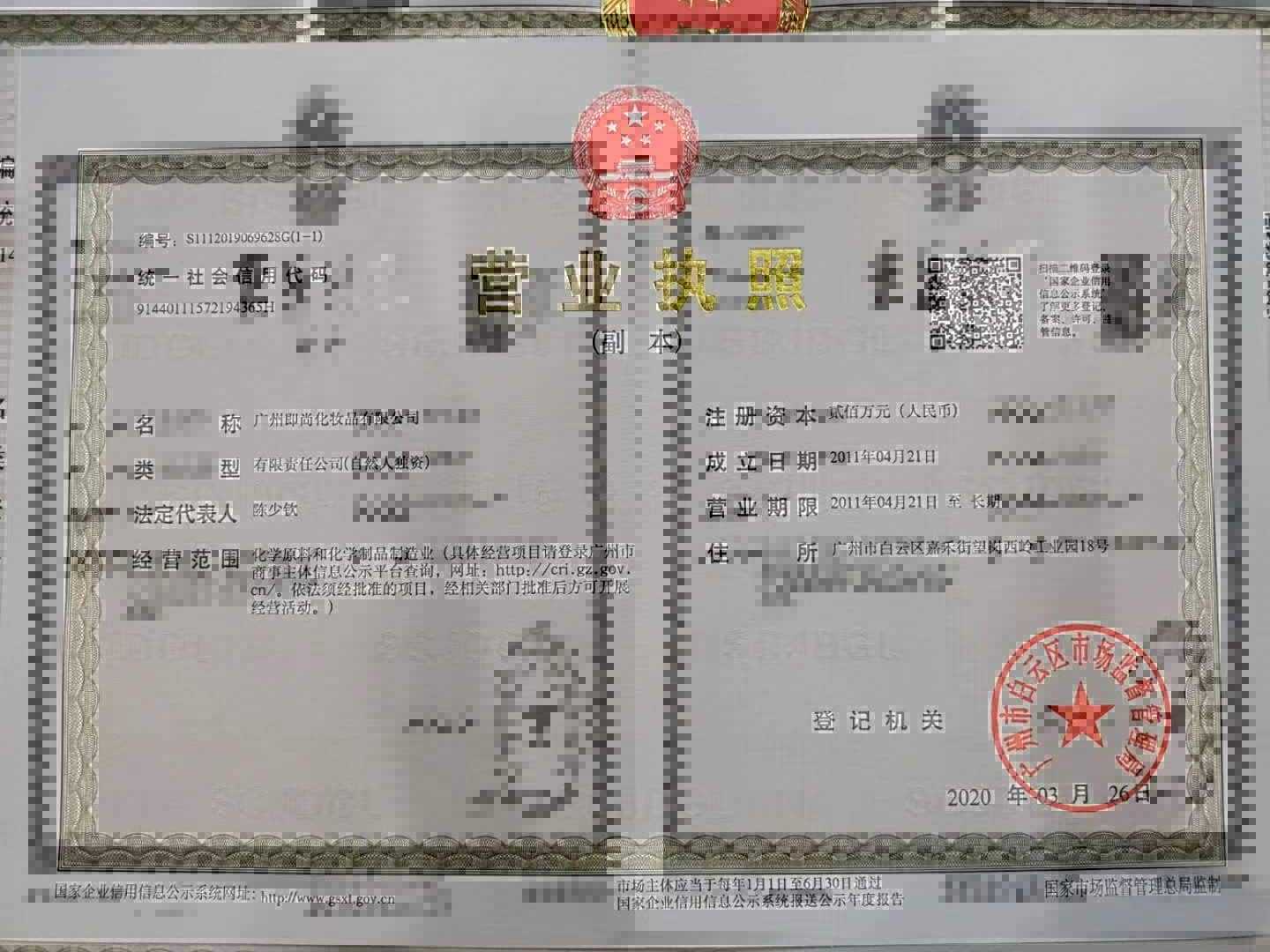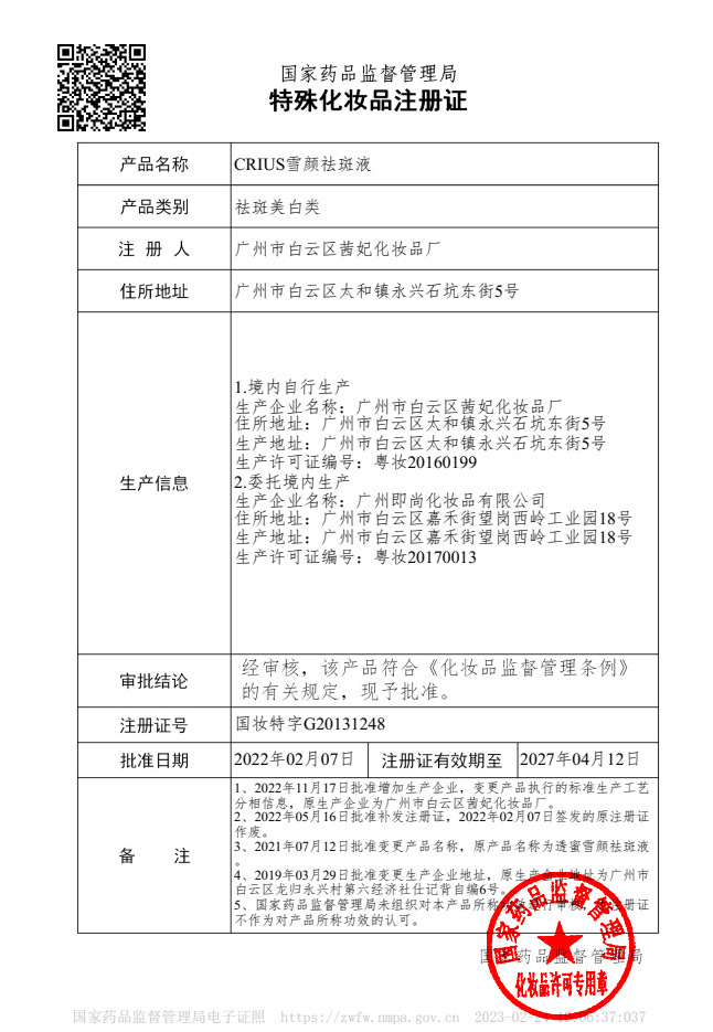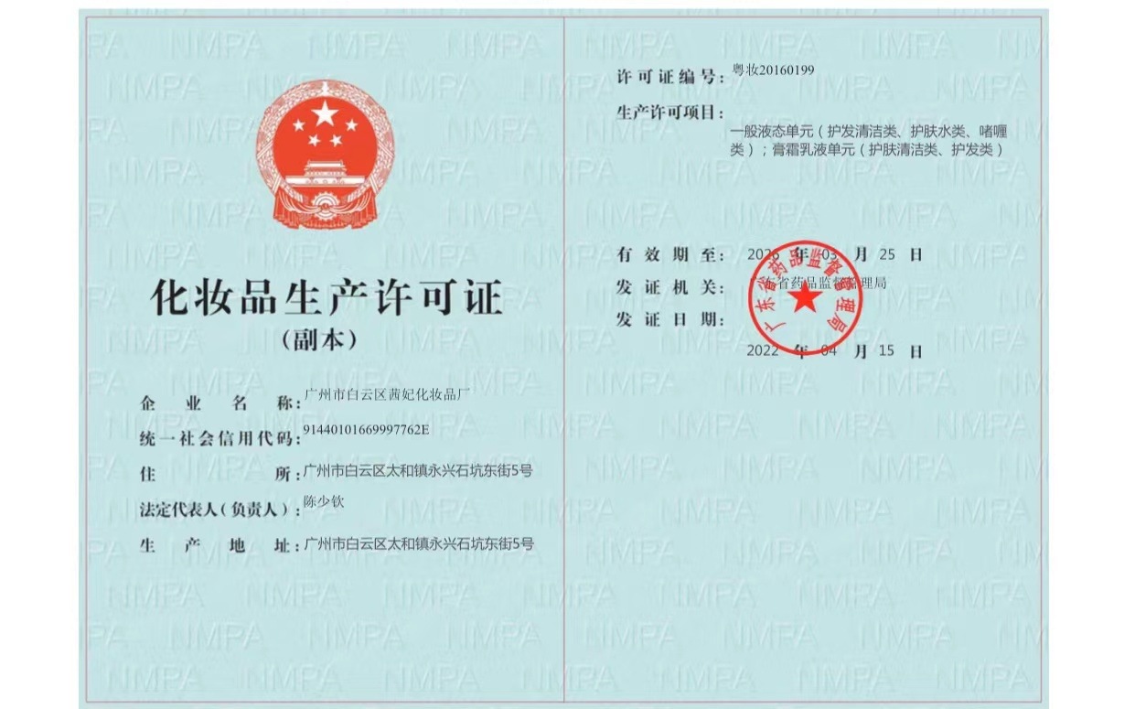 生産許可証番号 広東化粧20170013