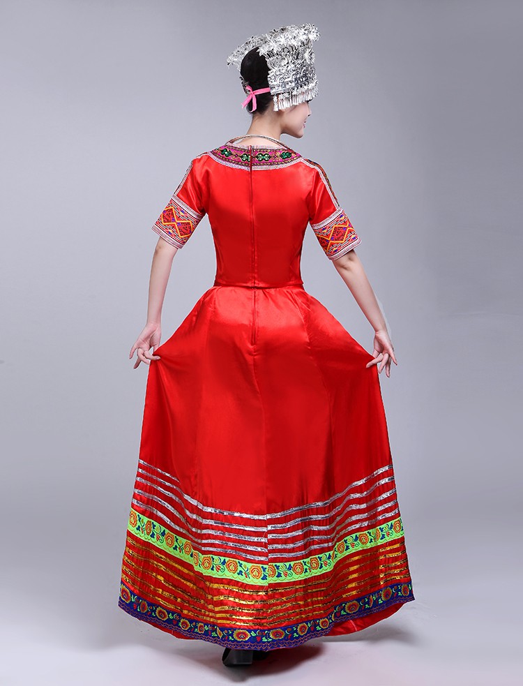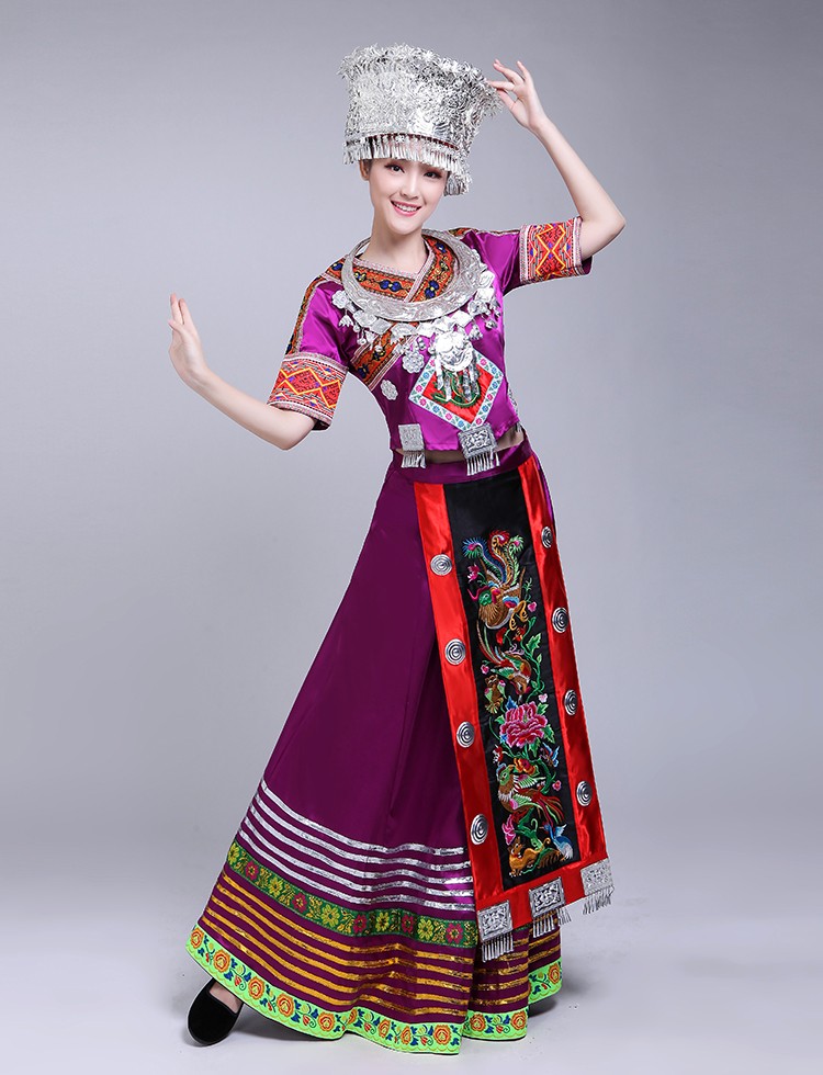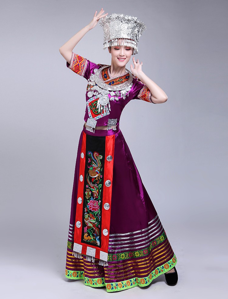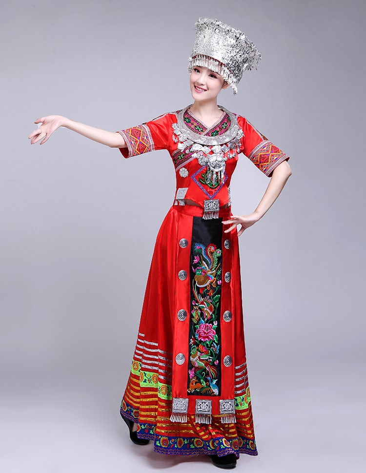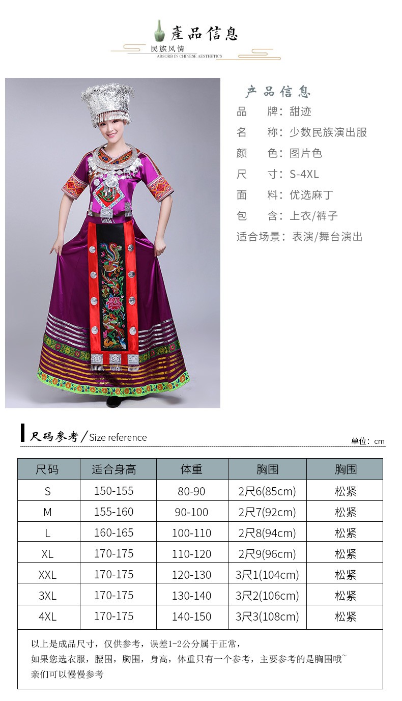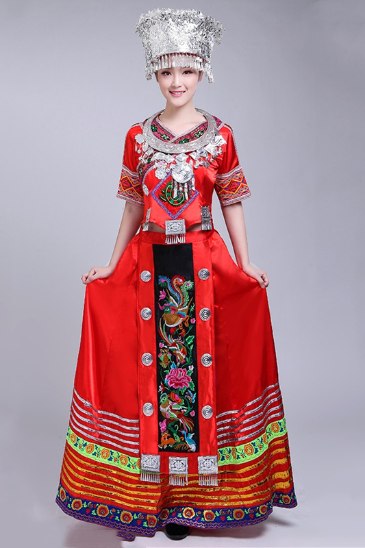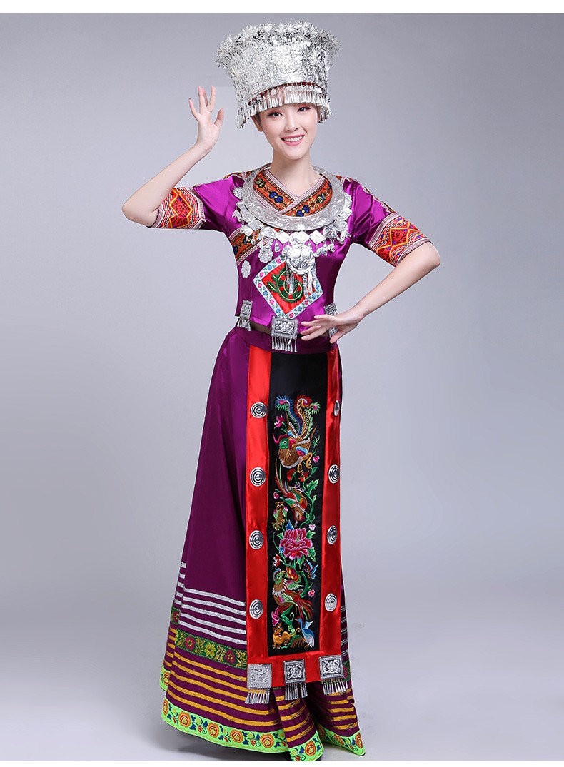 新商品のミャオ族の服装の女性のミャオ疆の少女のミャオ家は刺繍の舞台の出演服を飾って独唱して試合の旅を撮影します。