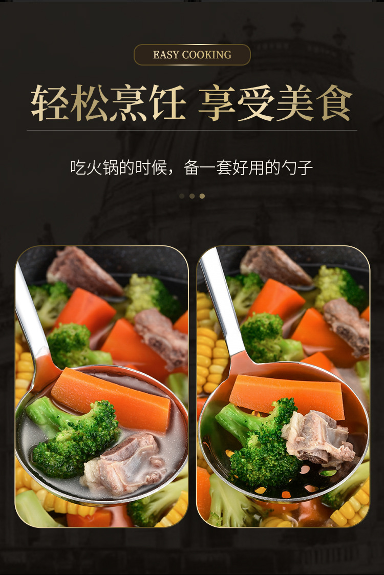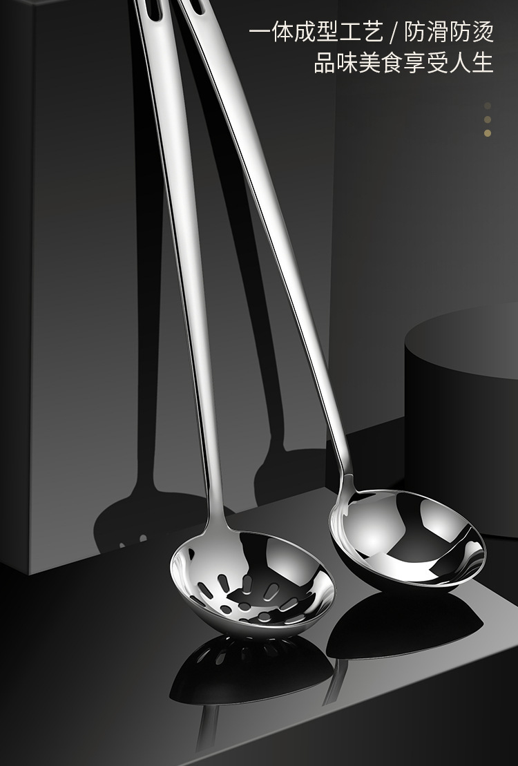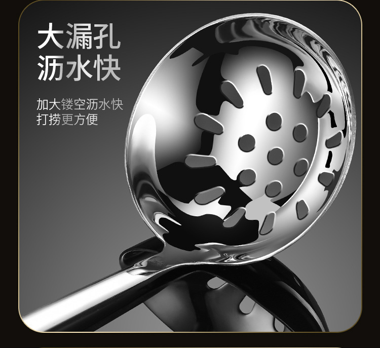 厚みのある304ステンレス鋼ザル、家庭用キッチンツール、長柄鍋スプーン、大型スープスプーンセット卸売