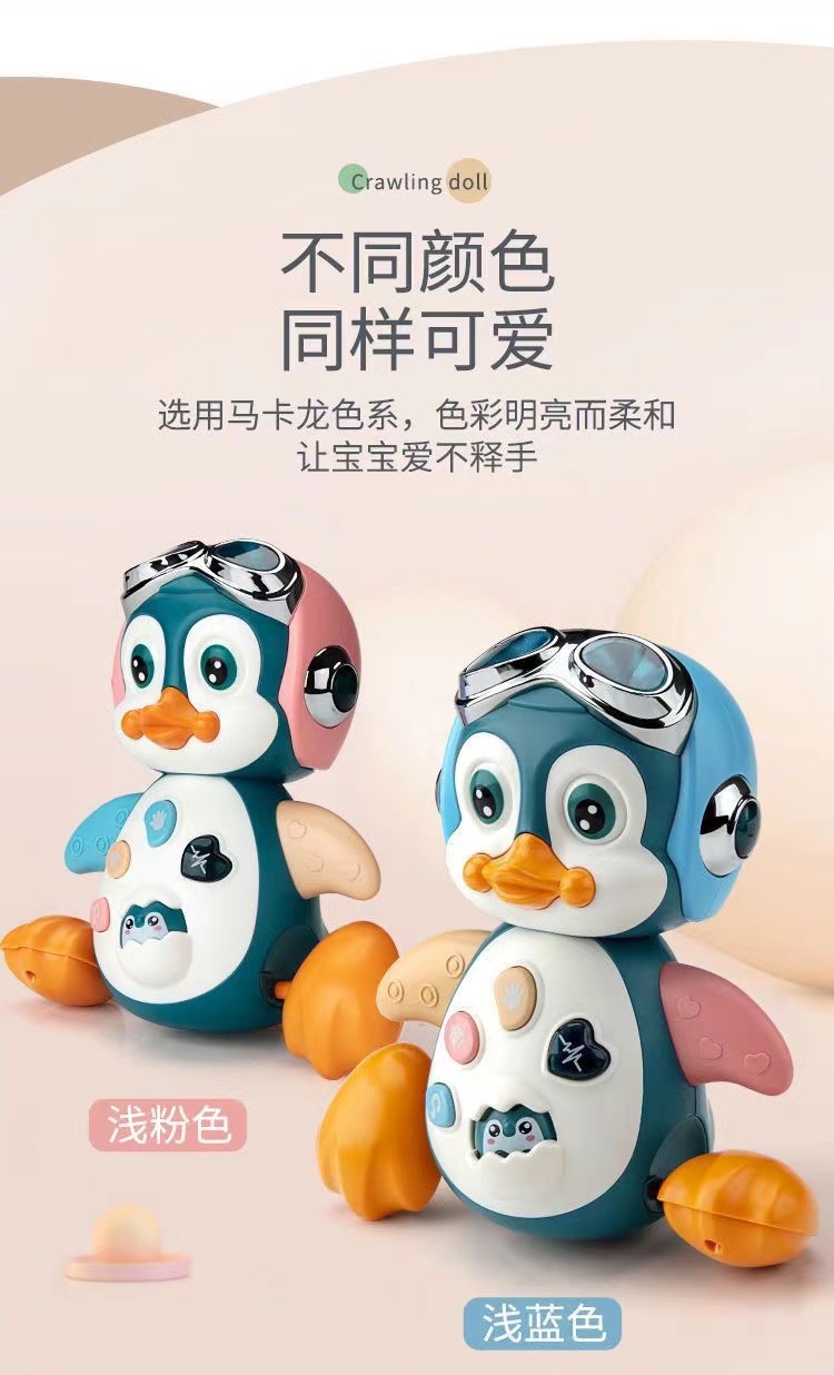 電動の黄色いアヒルとペンギンの音楽と揺れが楽しい知育玩具、赤ちゃんの早期教育、子供のハイハイ練習用、光と音楽のおもちゃ