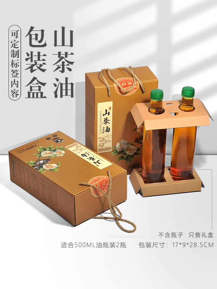 山茶油茶籽油500ML两瓶装 茶油瓶包装礼品盒子手提袋印刷工厂