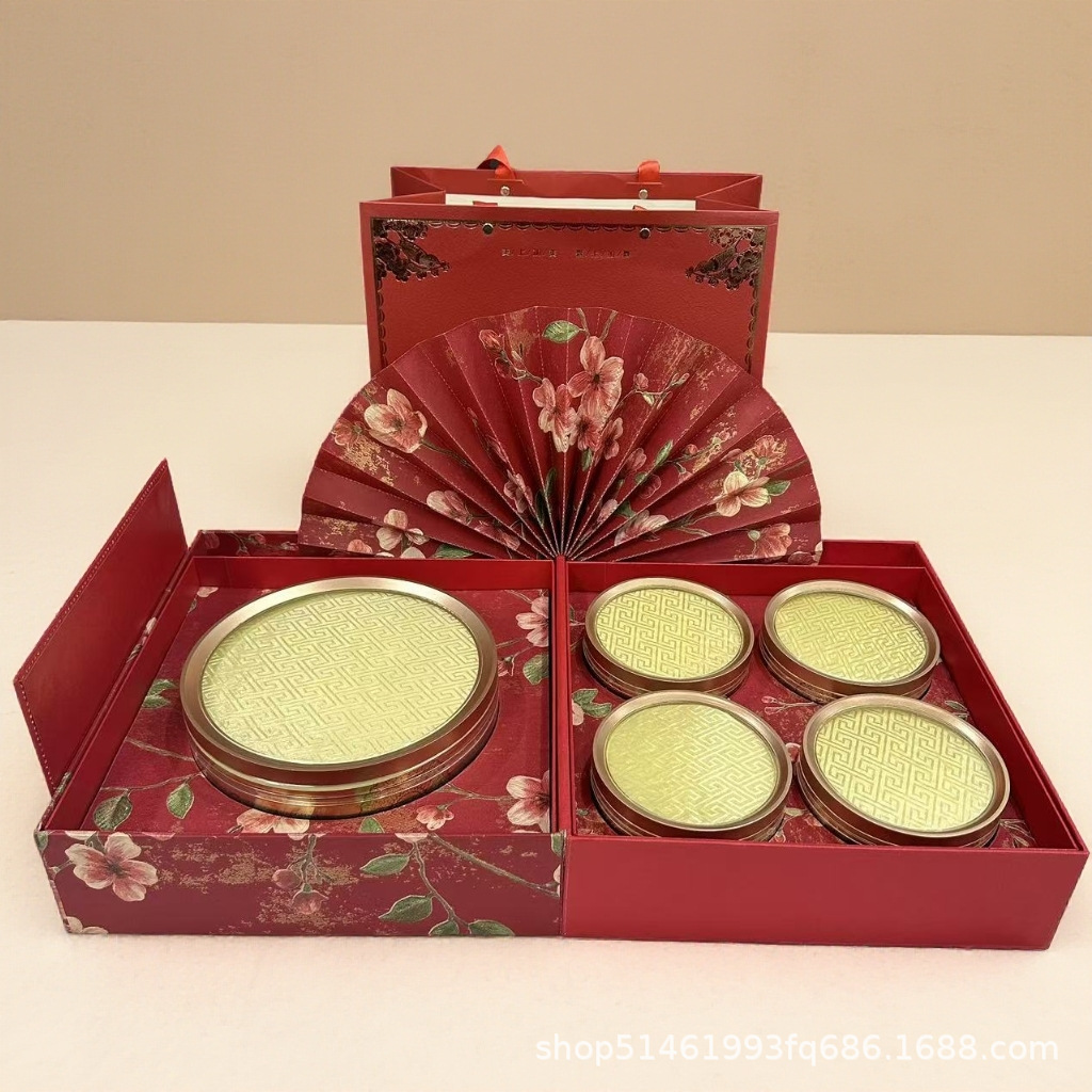 锦上添花四宝国风礼盒虫草石斛五拼八拼滋补品红色通用包装盒空盒