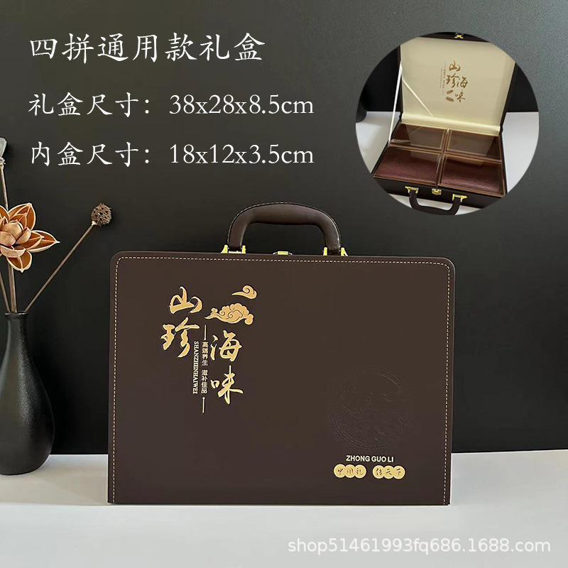 海味干货四拼礼盒现货空盒石斛西洋参包装盒海参鲍鱼双拼伴手礼盒