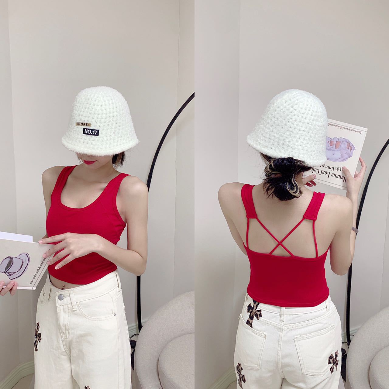 新作キャミソール レディース 綿100% セクシーで純粋な魅力 ホットガール 胸パッド付き インナーにもアウターにも使える クロスバック 美背 ノースリーブ