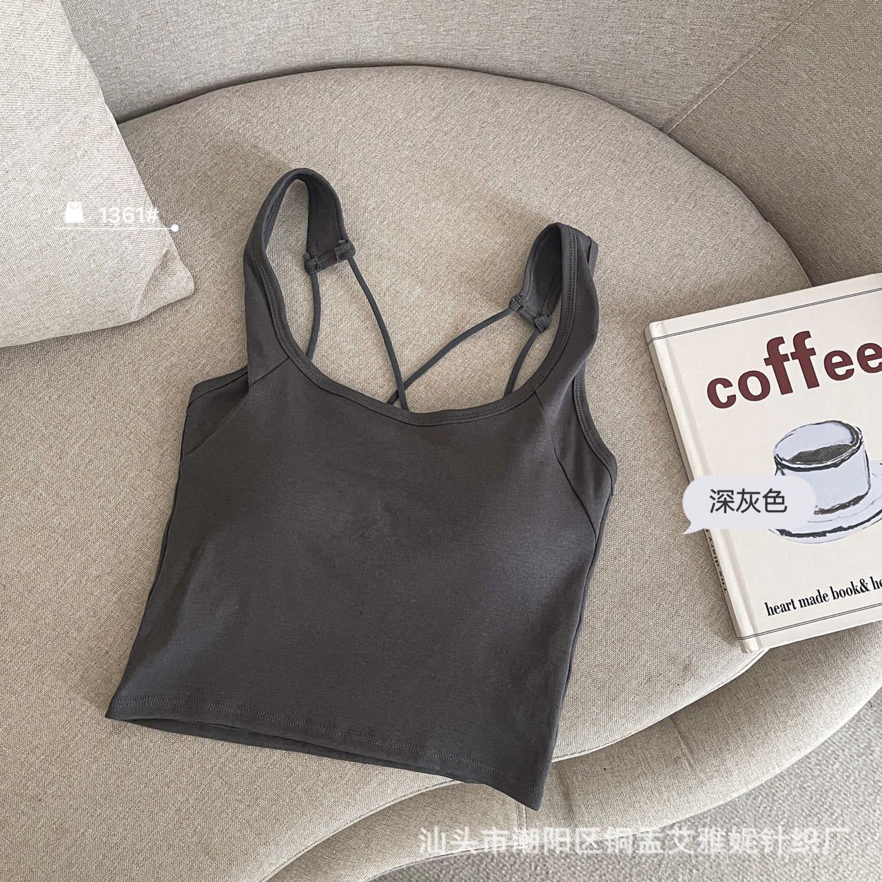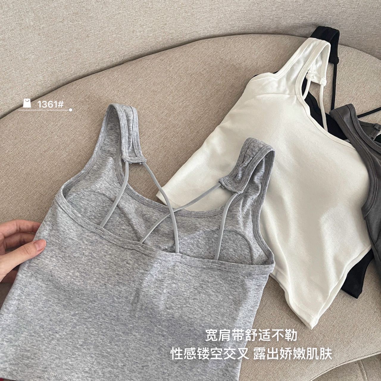 美しいバッククロスサスペンダーホットガールベスト女性のための 2025 新しいアウターウェア胸パッドとインナーウェア痩身ボトミングチューブトップ夏
