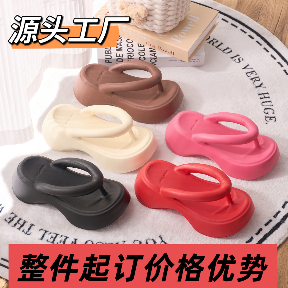 厚い底の6センチの女性のスリッパの夏の外は人の字を着て涼しくて、高くなって糞を踏んで感じます。
