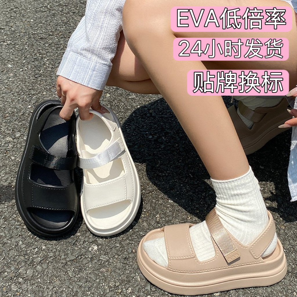 跨境批发厚底时尚百搭户外沙滩凉鞋女小个子增高魔术贴可调节凉鞋