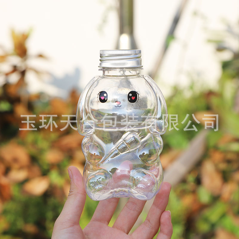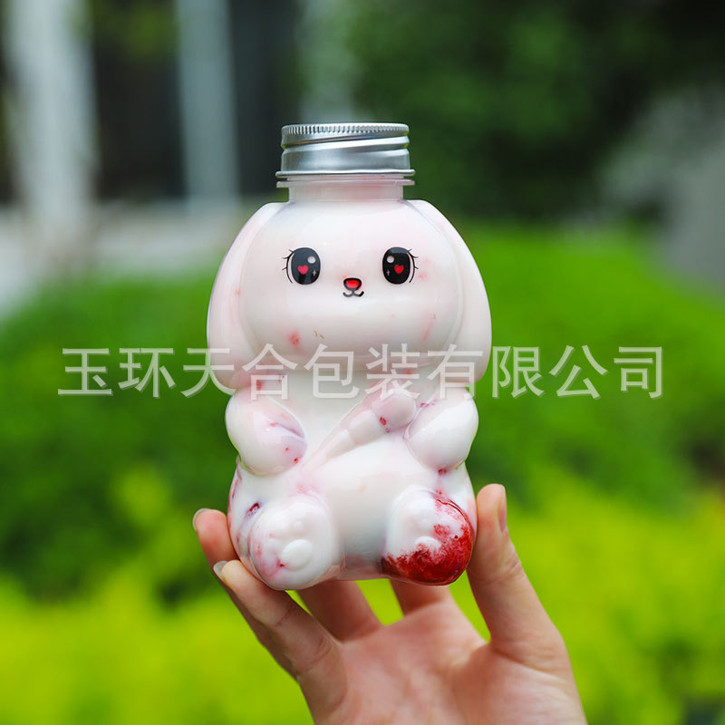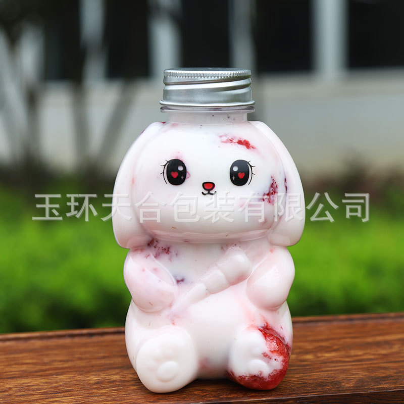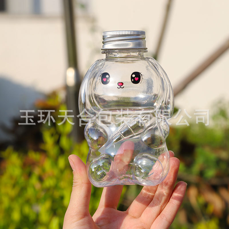 新しい350ml 250ml食品級pet超萌えウサギミルクティージュース冷たい飲み物漏れ防止飲料店包装瓶
