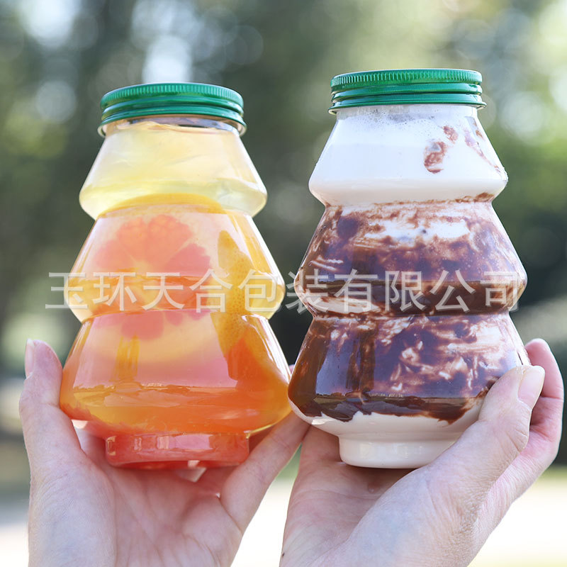350ml透明PET食品級ペットボトル蜂蜜冷飲ジュース瓶使い捨て密封商用空瓶