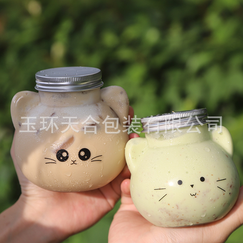 500ml厚・透明プラスチックpetミルクティーカップ・装飾飲料招き猫ジュース冷飲料異形瓶