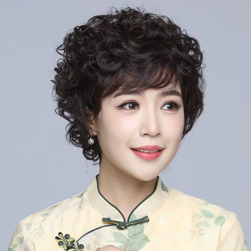 中高年のかつらのショートヘアは本当に中年のお母さんのかつらです。
