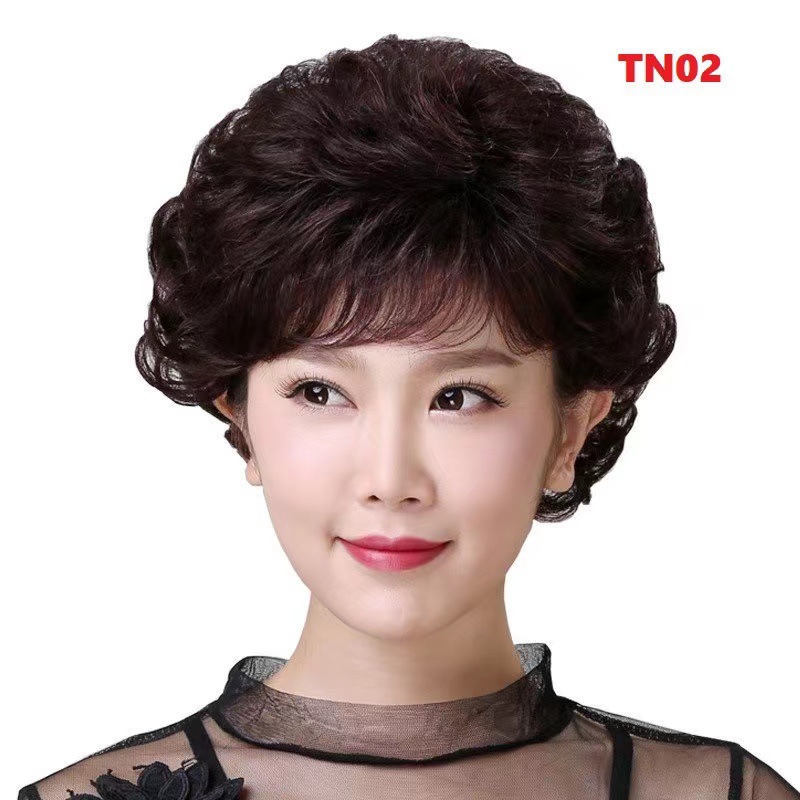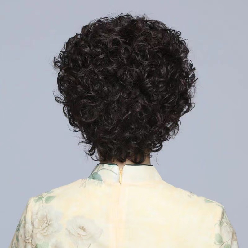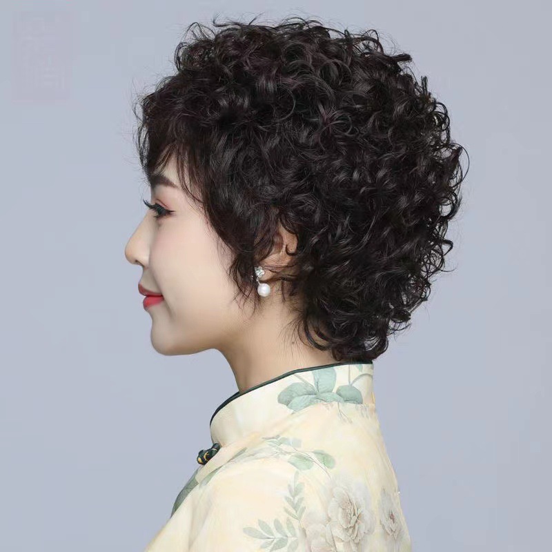 ショートヘアのかつらカバー女性のショートヘアの巻き髪の全頭カバー式の自然な中高年はお母さんにファッションパーマを送ります。