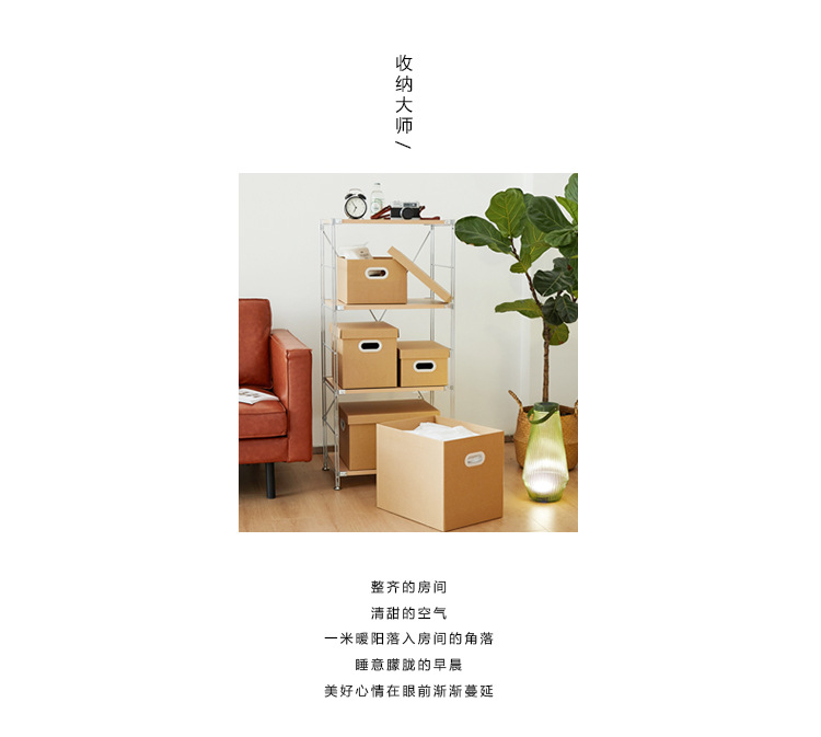 夢箱家クラフト紙収納箱セーター卸売り寝室服本整理箱蓋付き折り畳み段ボール箱