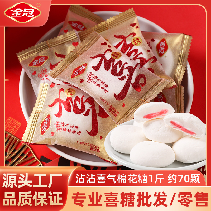金冠沾沾喜气棉花糖500g喜庆婚糖摆盘喜糖果结婚伴手礼散装批发