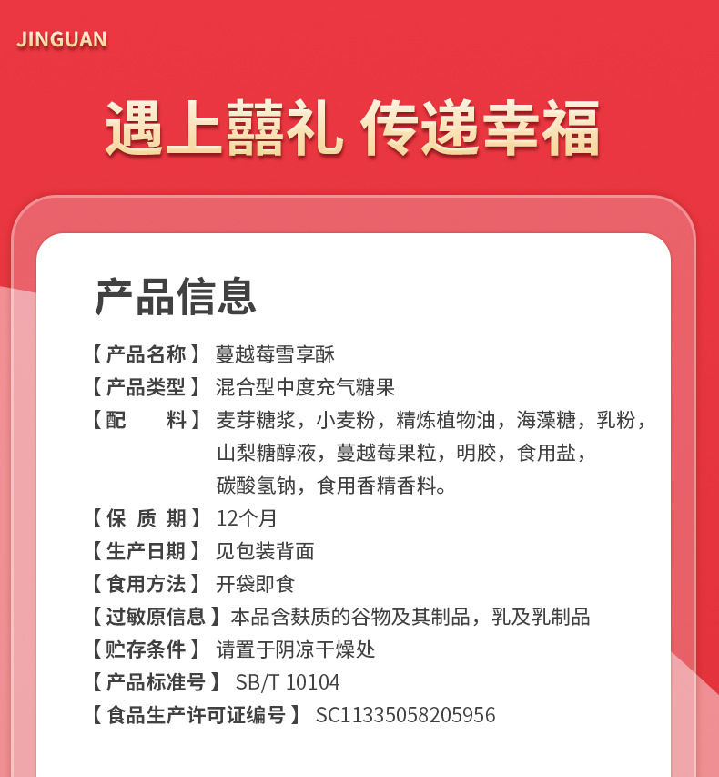 金冠歓喜クランベリー味雪花ショートニング昼寝の軽食品高颜値婚約結婚喜糖果
