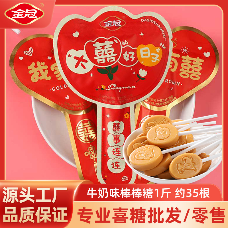 金の冠の大喜びの良い日の牛乳の味のロリポップのレジャーの子供の軽食の結婚の喜糖の専用のキャンディー