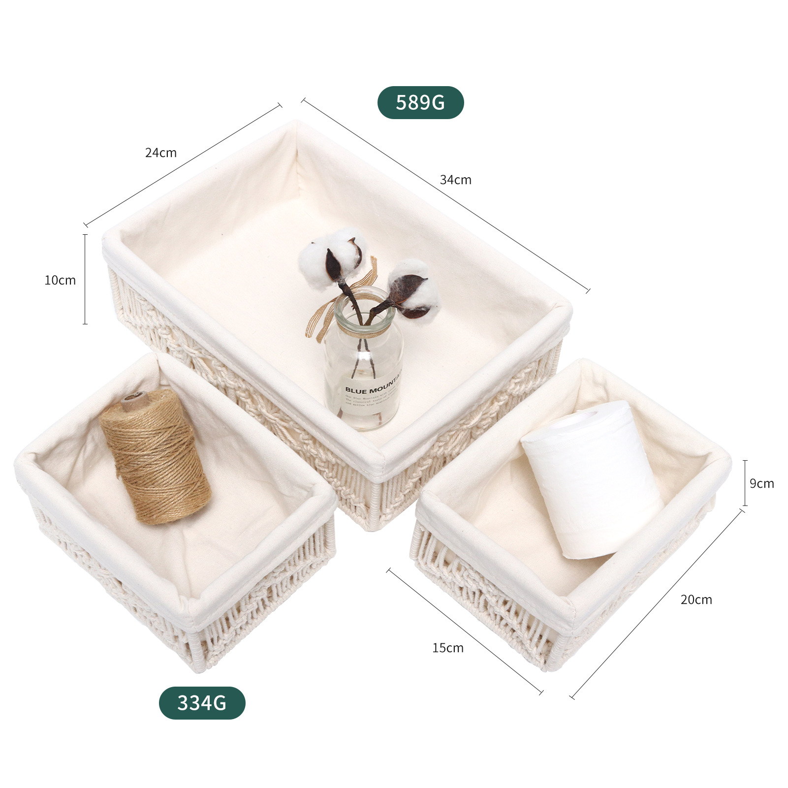 国境を越えたデスクトップ収納ケース3点セット綿麻紐編み収納バスケット化粧品整理雑物収納バスケット