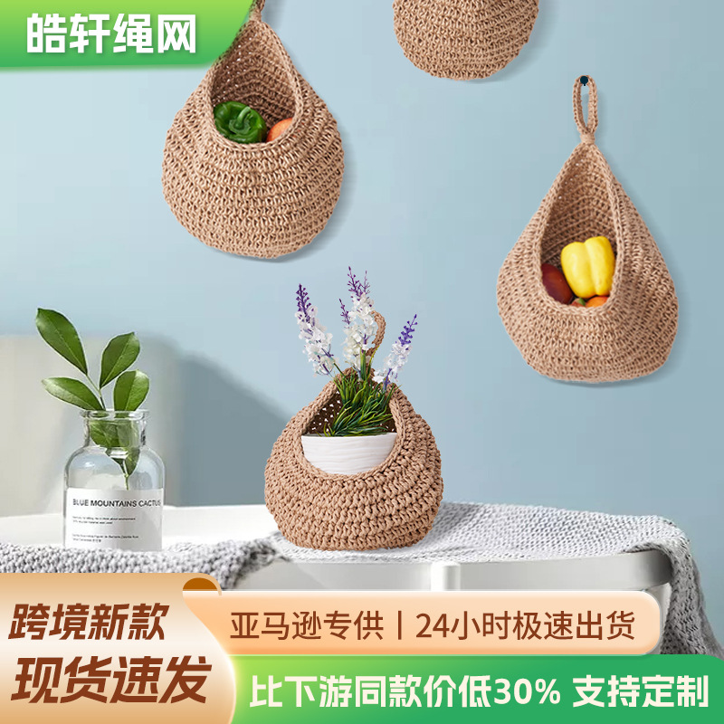 壁を編む果物網兜鳥の巣水滴網キッチン果物野菜収納綿紐編み花籠網兜