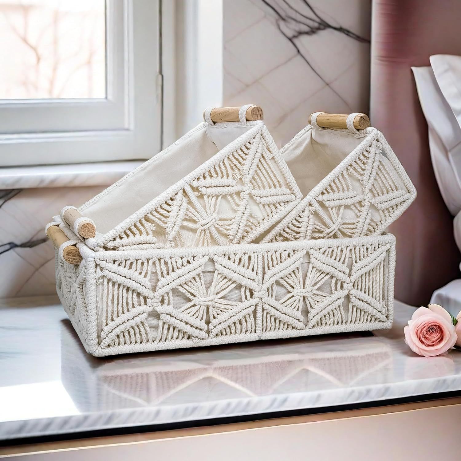 ボヘミアン北欧風コットンロープ手編みデスクトップ収納バスケット化粧品収納バスケット花果物バスケットトイレットペーパーホルダー