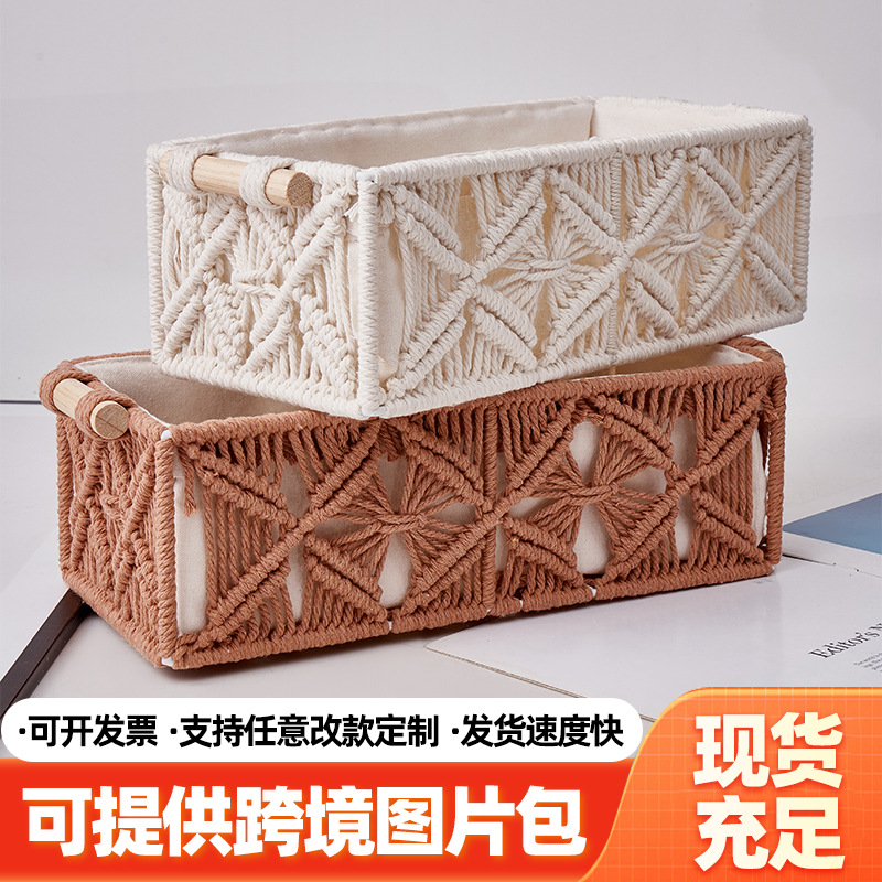 クロスボーダー収納ボックス手編みスクエア置物収納ボックス化粧品整理籠テーブルスナック収納籠