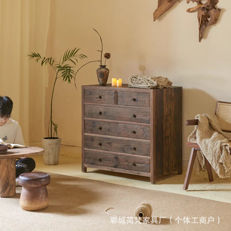 老楡木収納棚引き出し棚サイドキャビネット実木老楡木斗戸棚客間引き出し戸棚寝室ロッカー