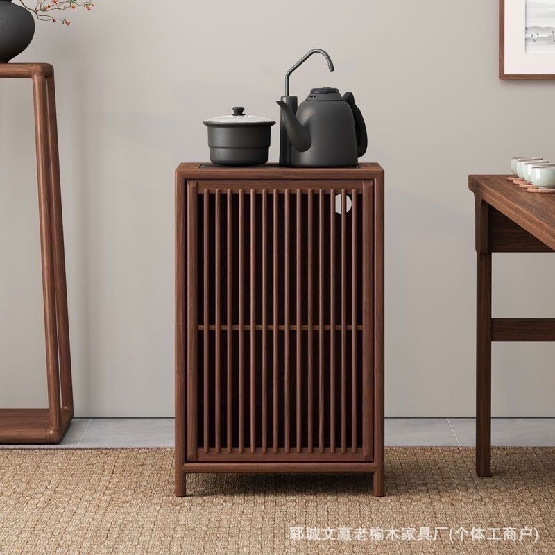 新中式老榆木茶水柜落地式双层陶瓷茶壶储物柜客厅饮水机茶台边柜