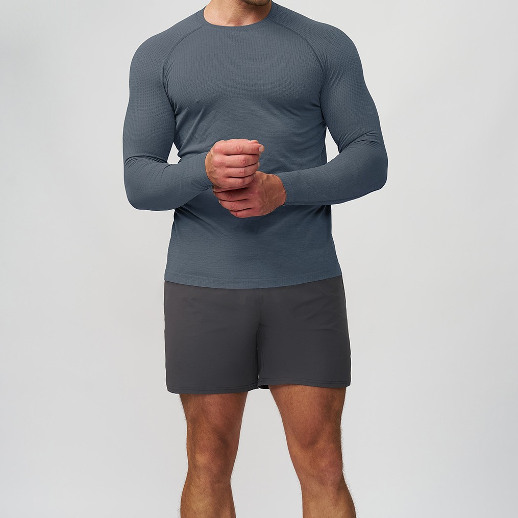跨境男士无缝运动健身速干透气长袖t恤瑜伽跑步双色打底上衣7752