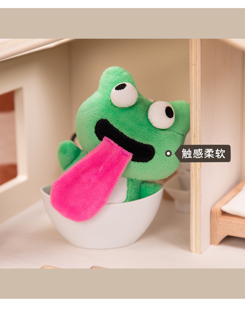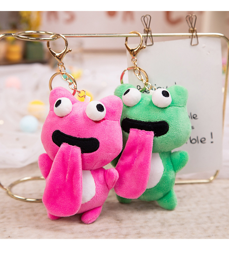 しっぽを振って子犬のぬいぐるみが舌を吐くカエルは、ペンダントを引っ張ることができます。