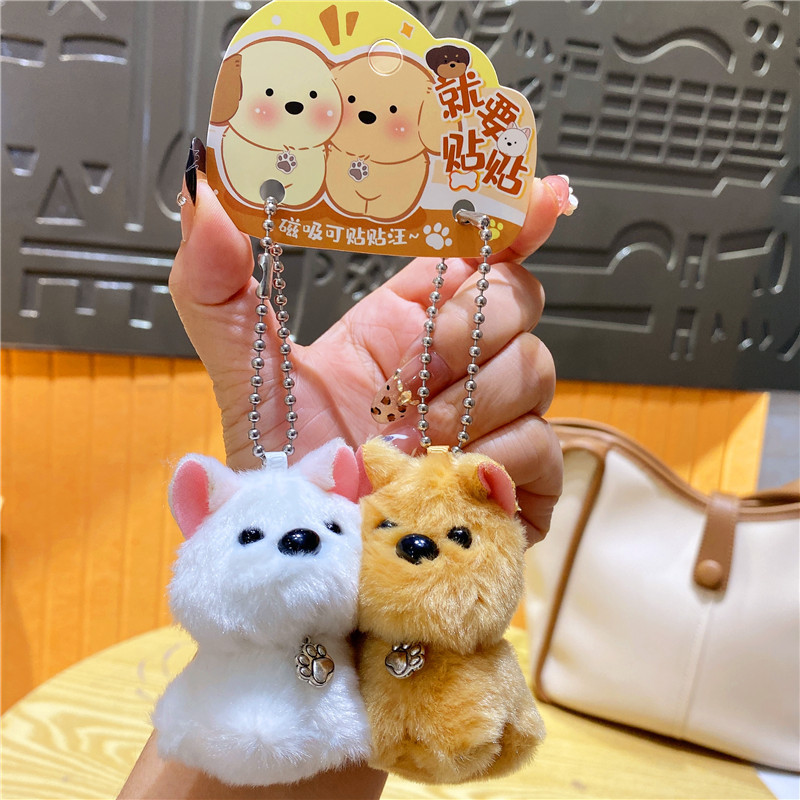 网红毛绒小鼻嘎对装西高地小狗钥匙扣挂件情侣一对包包挂饰钥匙链