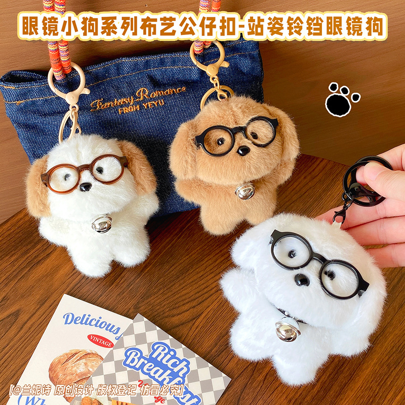 眼镜小狗站姿铃铛眼镜狗毛绒钥匙扣可爱玩偶公仔情侣包包挂件礼物