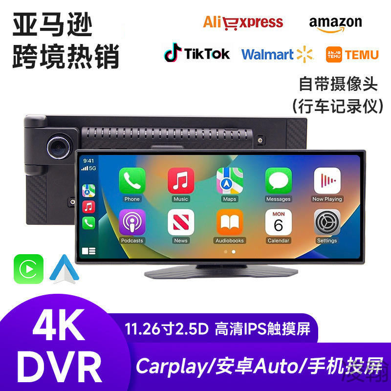 跨境Carplay 行车记录仪高清4K前后双录WiFi导航仪中控台倒车影像