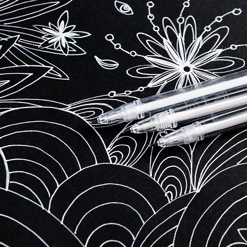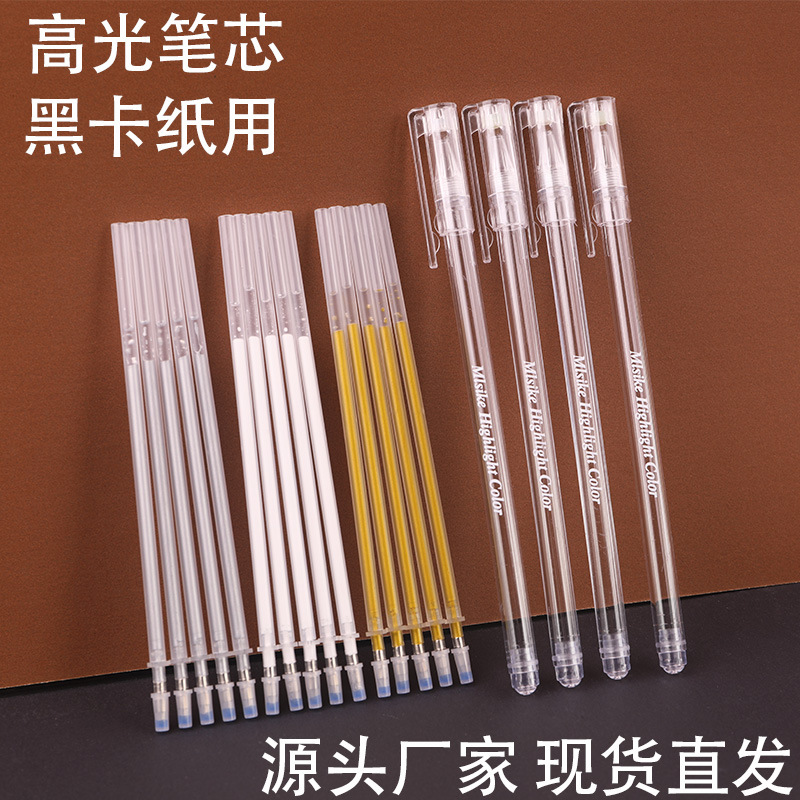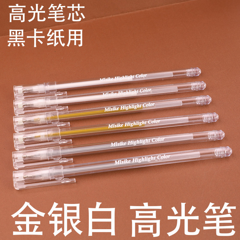 白大容量中性芯黒底書き白字黒紙硬筆書道筆1.0ハイライト絵画代替芯