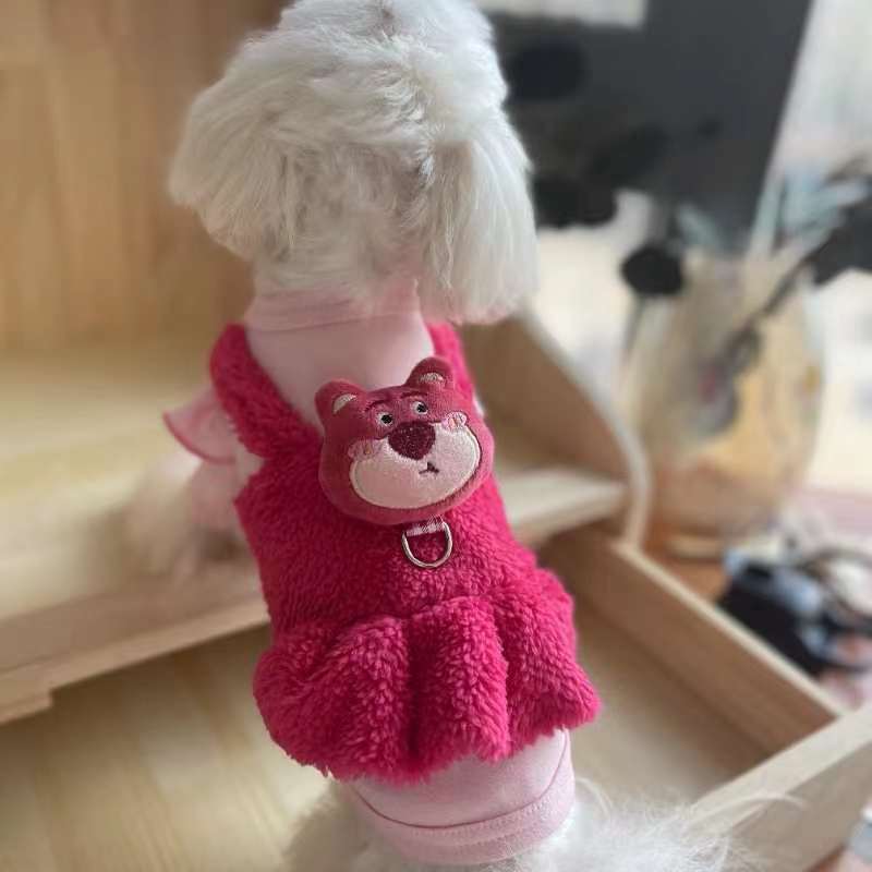2023新型ペット秋冬ボトムシャツ犬猫偽2枚のベルベットスカート泰迪比熊秋冬服