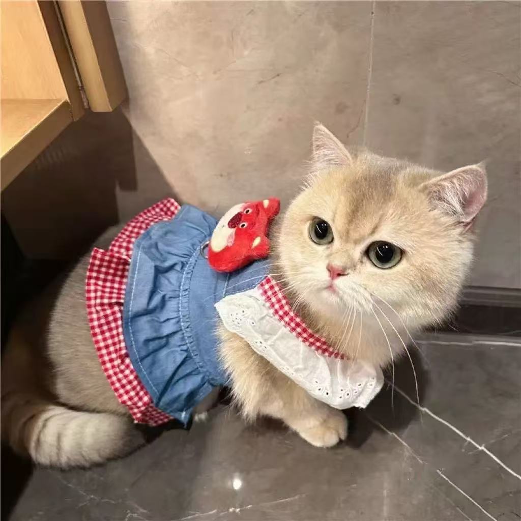 オリジナル越境春夏ペット胸牽引紐猫犬服萌え鶏いちご熊アニメ人形