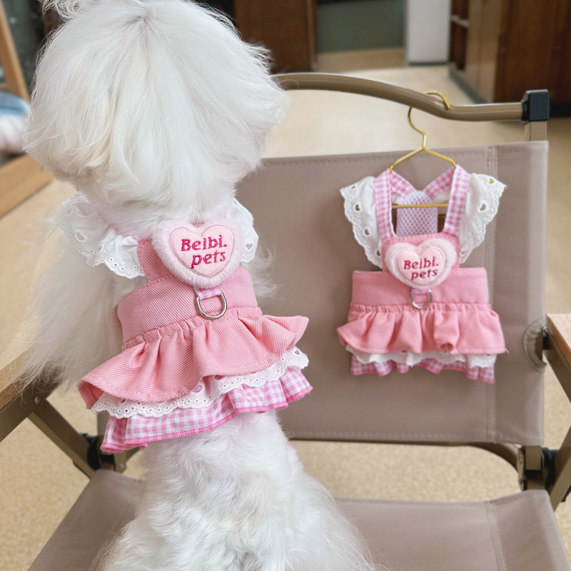 オリジナルペット韓国風羽プリンセスドレス犬猫牽引ハーネス服春と夏通気性