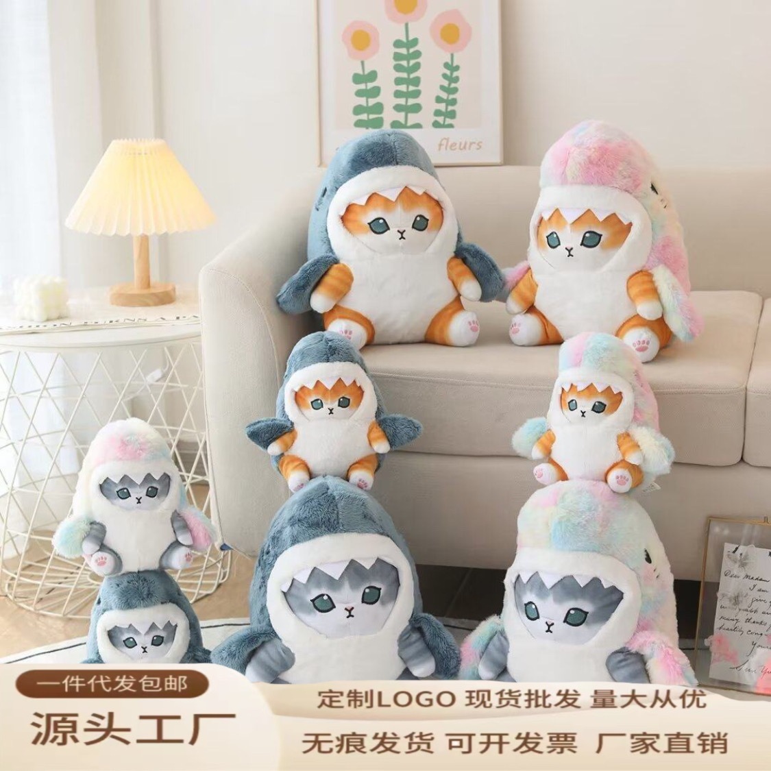 クロスボーダーのかわいいサメの猫がぬいぐるみに変身しました。