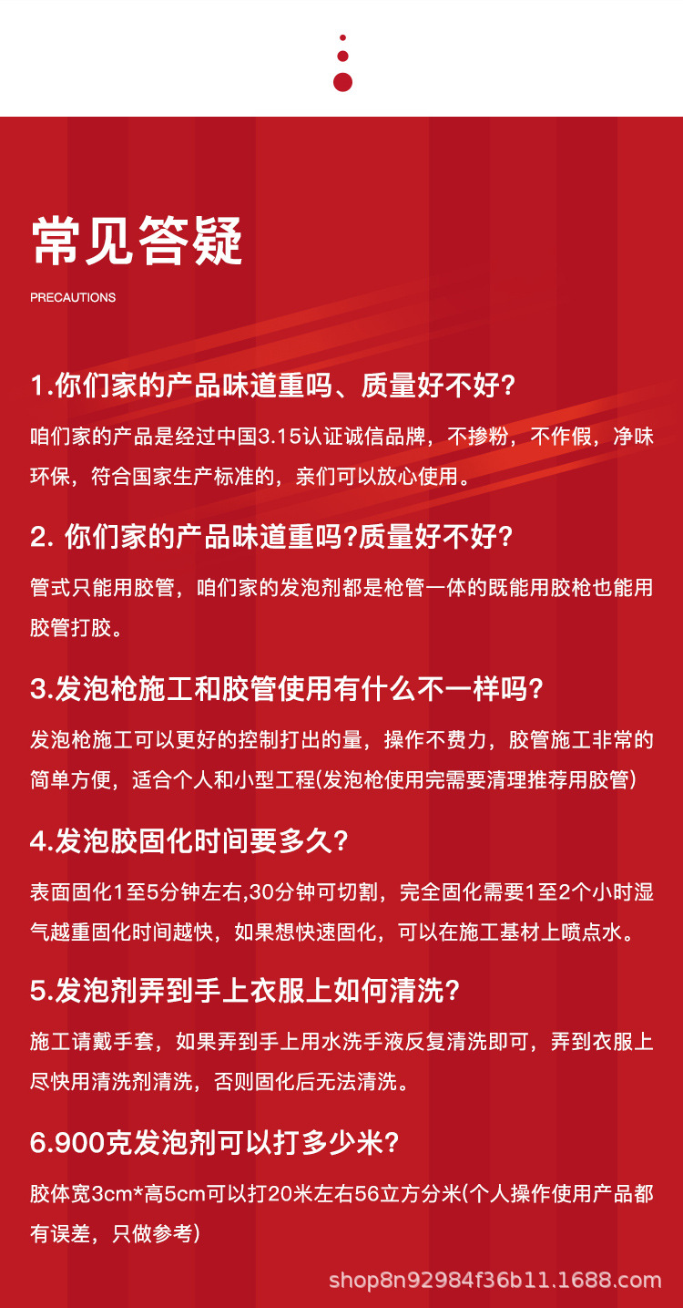 発泡剤、ポリウレタンフォームコーキング剤、ドア、窓、橋梁、パイプ用フォーム接着剤、自己消火性難燃性フォーム接着剤、防水