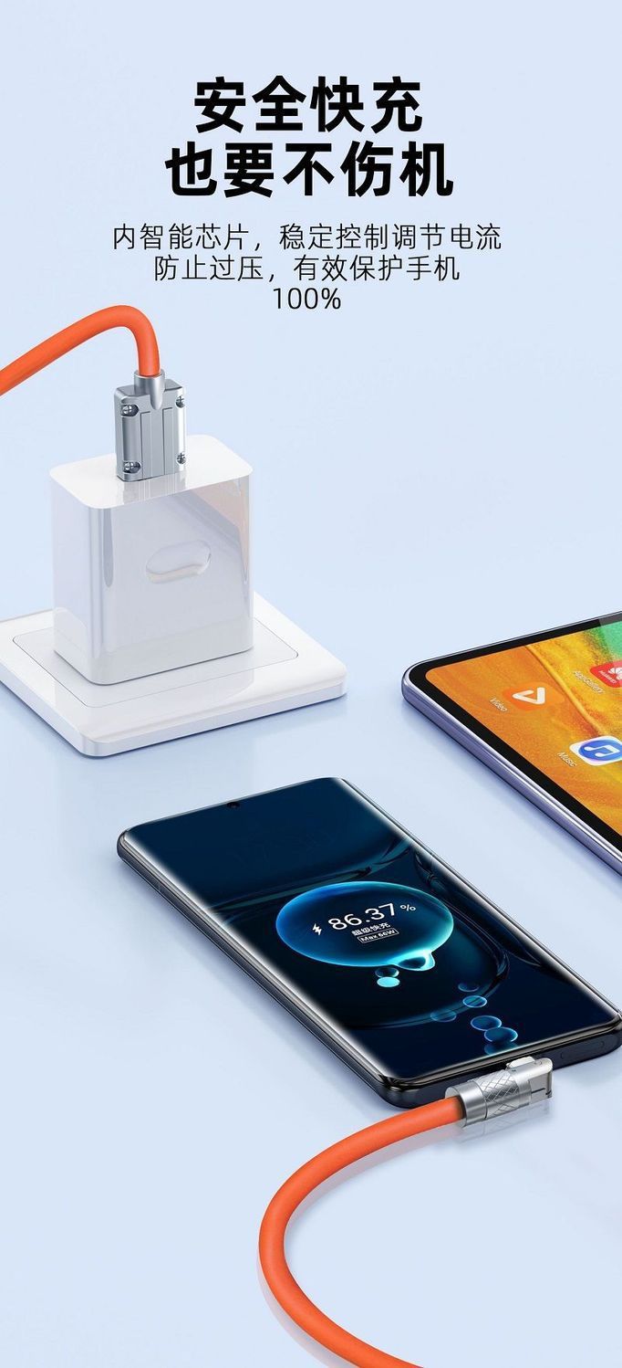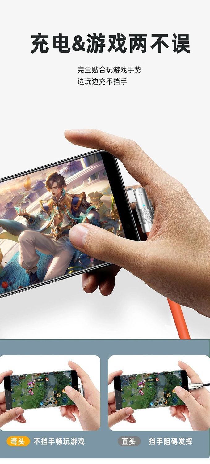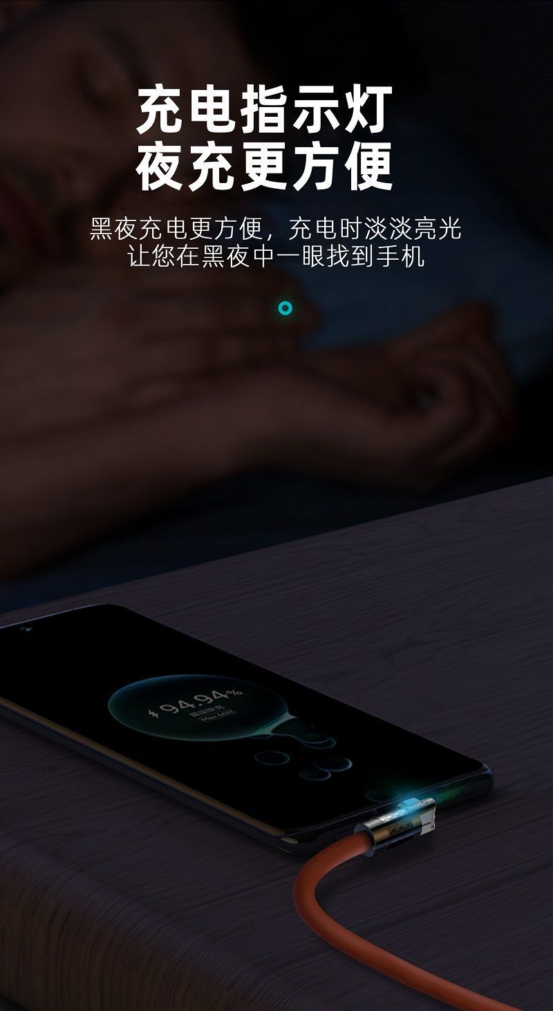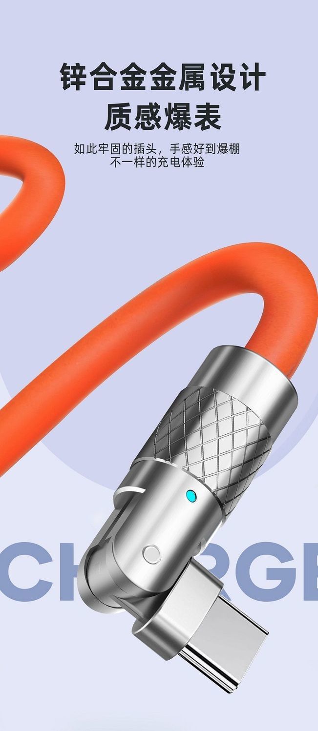 180度回転エルボケーブル適用アップルアンドロイド華為typec120w発光亜鉛合金機客線