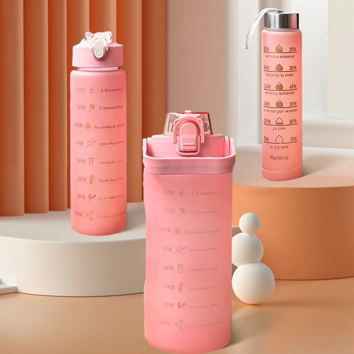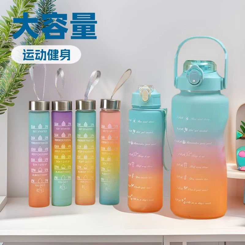 クロスボーダー 3 点セットウォーターボトルハンドロープつや消しグラデーションストロープラスチックウォーターカップ大容量アウトドアスポーツウォーターボトル