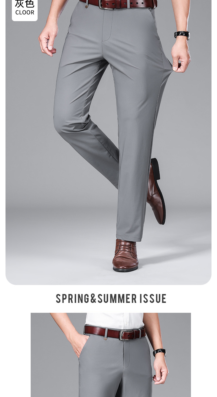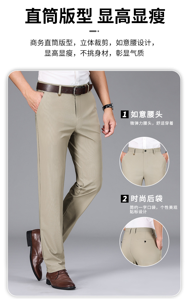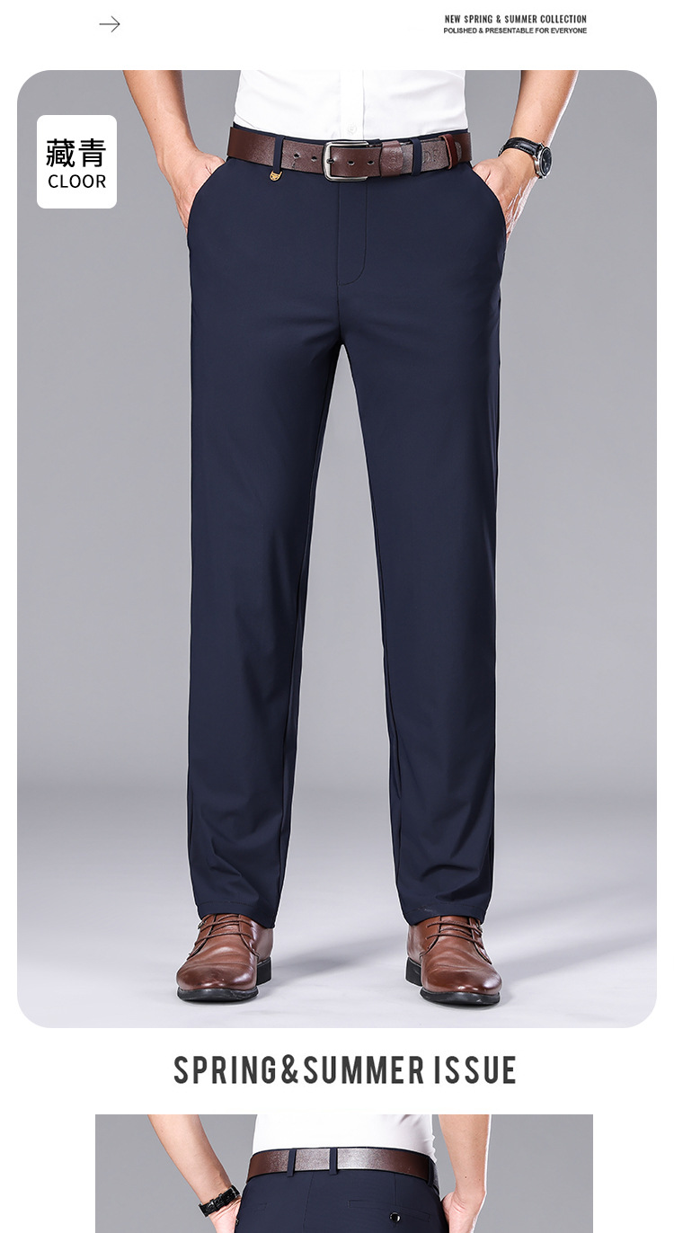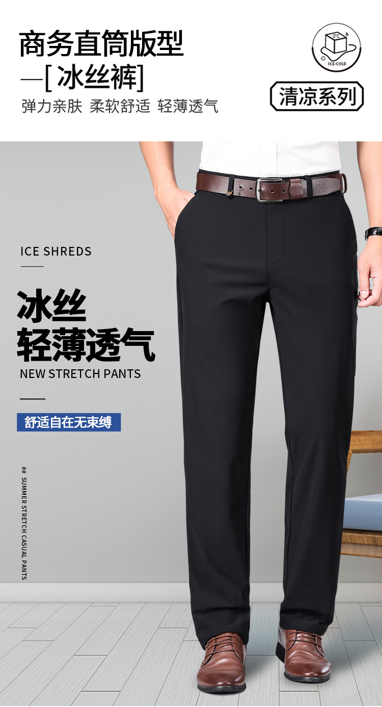 新しい夏の薄い男性カジュアルパンツ高弾力アイスストレートビジネスパンツ男の冷たい通気性の長いズボン