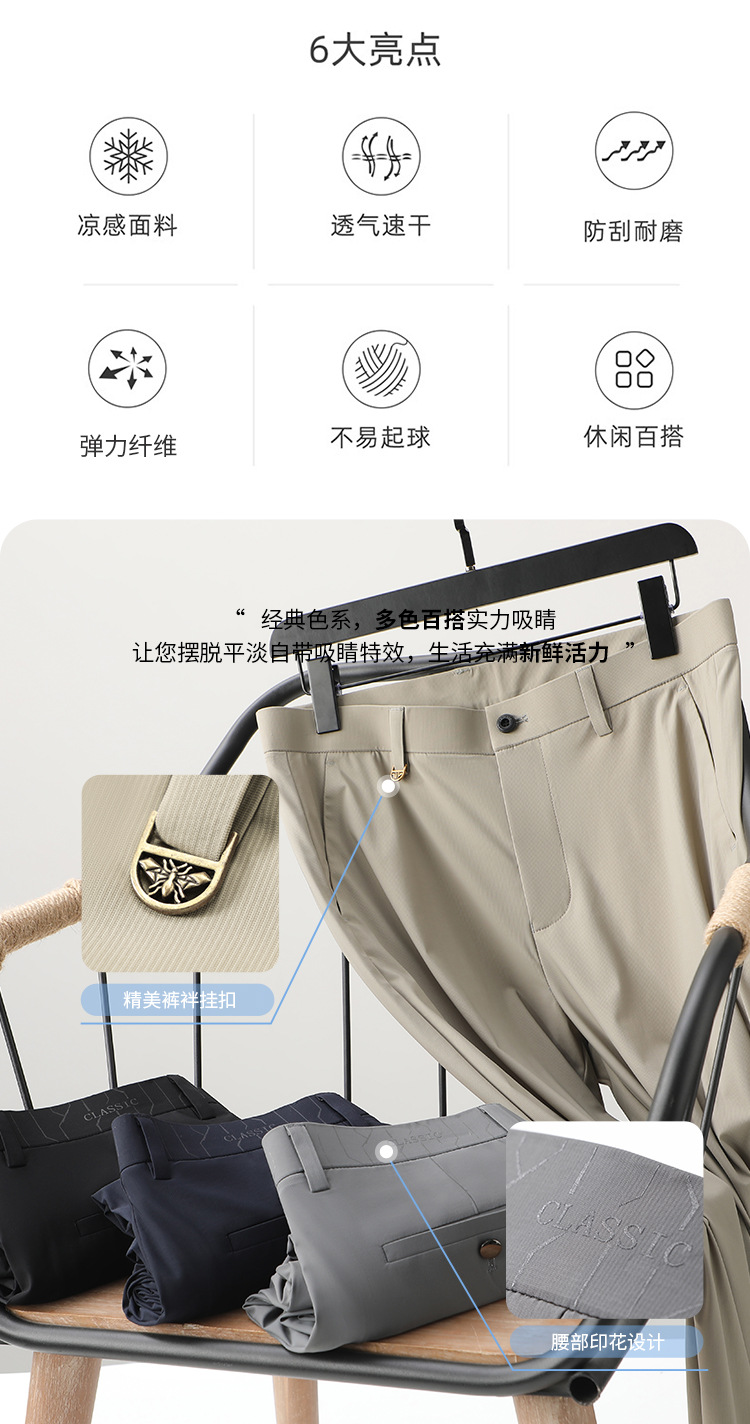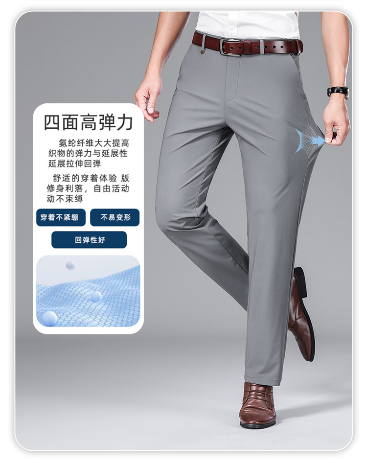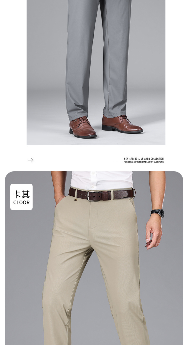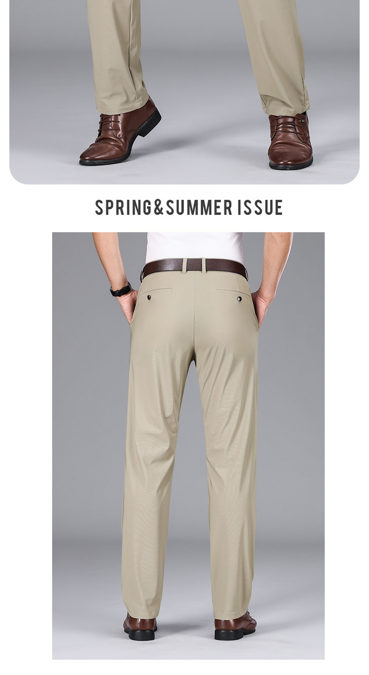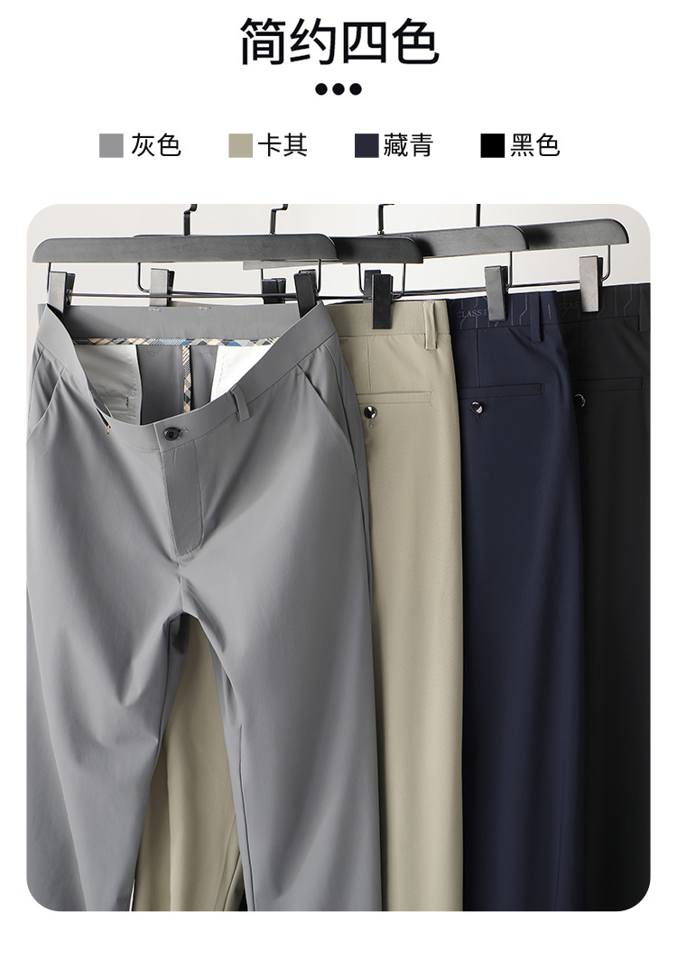 新しい夏の薄い男性カジュアルパンツ高弾力アイスストレートビジネスパンツ男の冷たい通気性の長いズボン