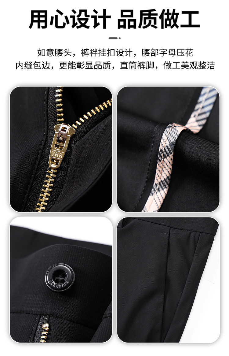 秋冬用ミルクシルク厚手カジュアルメンズパンツ、三防加工、裏起毛、メンズストレート、高伸縮性、防シワ、ドレープ感のあるビジネススーツパンツ