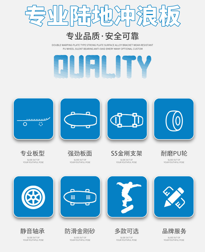 プレゼントは低価格の陸上サーフボードの四輪スケートボードの専門は街の初心者の陸沖スケートボードの卸売りをブラシします。