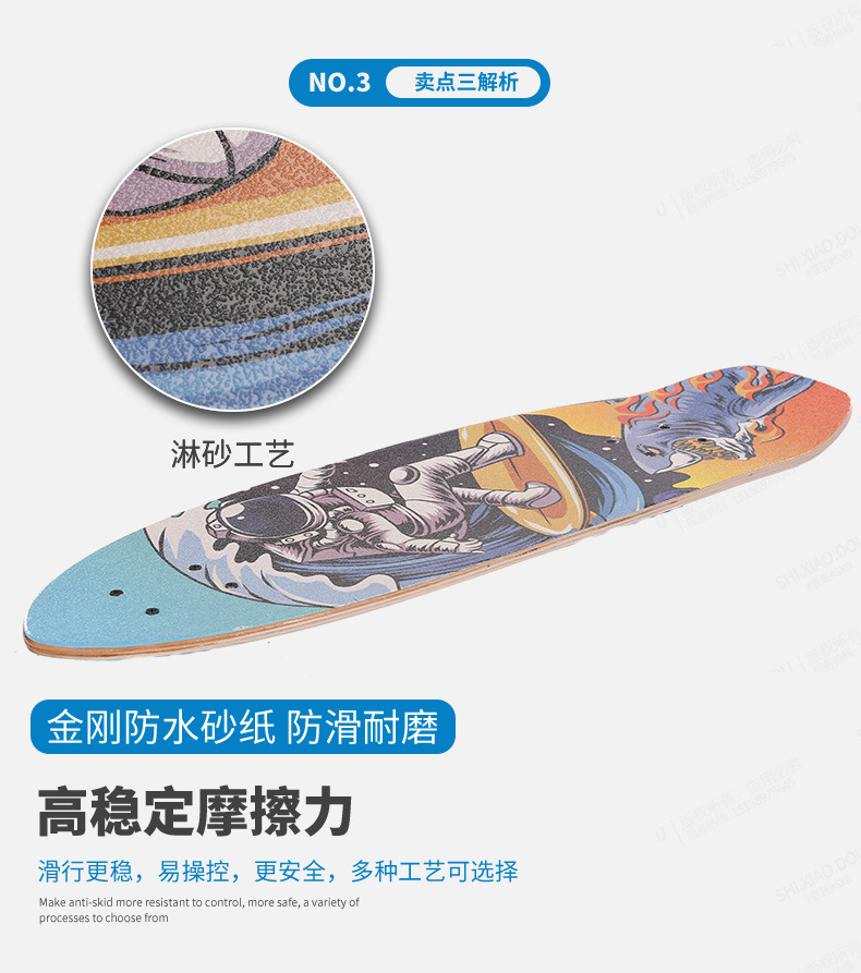 メーカーは女性の初心者の青少年の長い板のダンスの板に直接供給して、街の四輪のスケートボードの成人の道路の専門のスケートボードを塗ることができます。