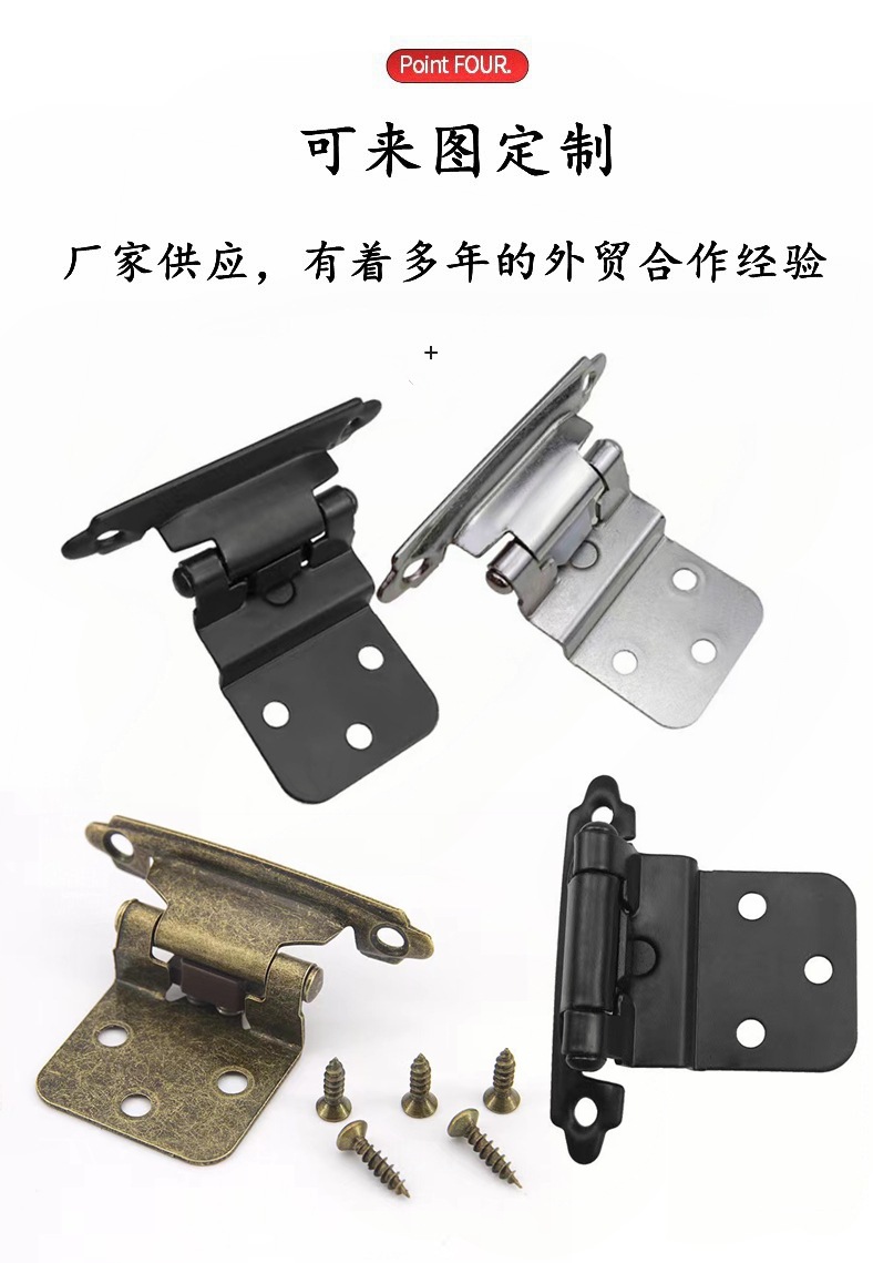 黒色アメリカ式自関ヒンジ1.2mmスプリングヒンジ食器棚カバー式フルヒンジ半蓋鉄ヒンジ